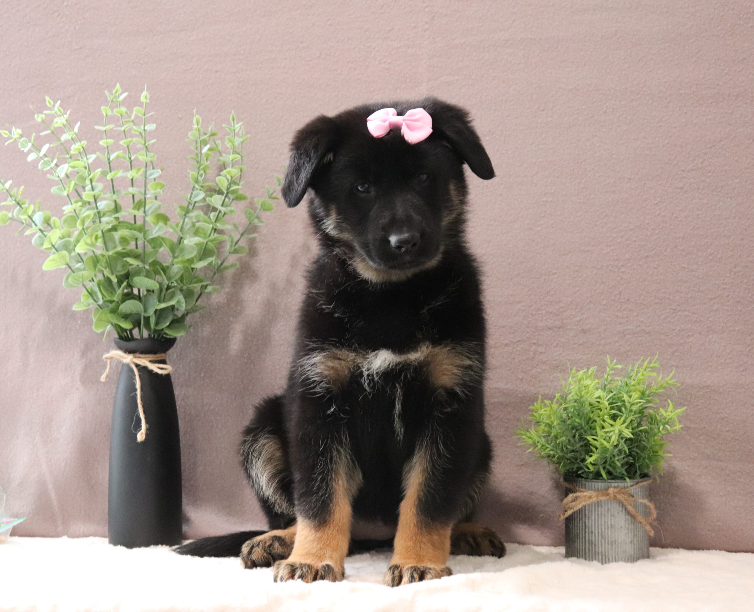 Avery, the German Shepherd is very caring and sweet! She is such a cheerful girl enjoys playing with toys! Her temperament is wonderful! She is eager to please and a bundle of love!