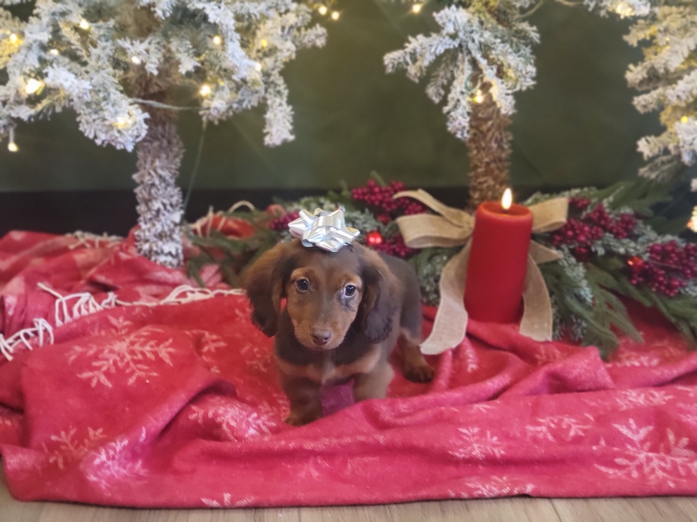 Darron the Dachshund enjoys getting all the attention he can and loves to play with his toys. He did great with his (ENS) Early Neurological Stimulation, he is definitly a joy to have around. He is happy to please just a super friendly little guy!