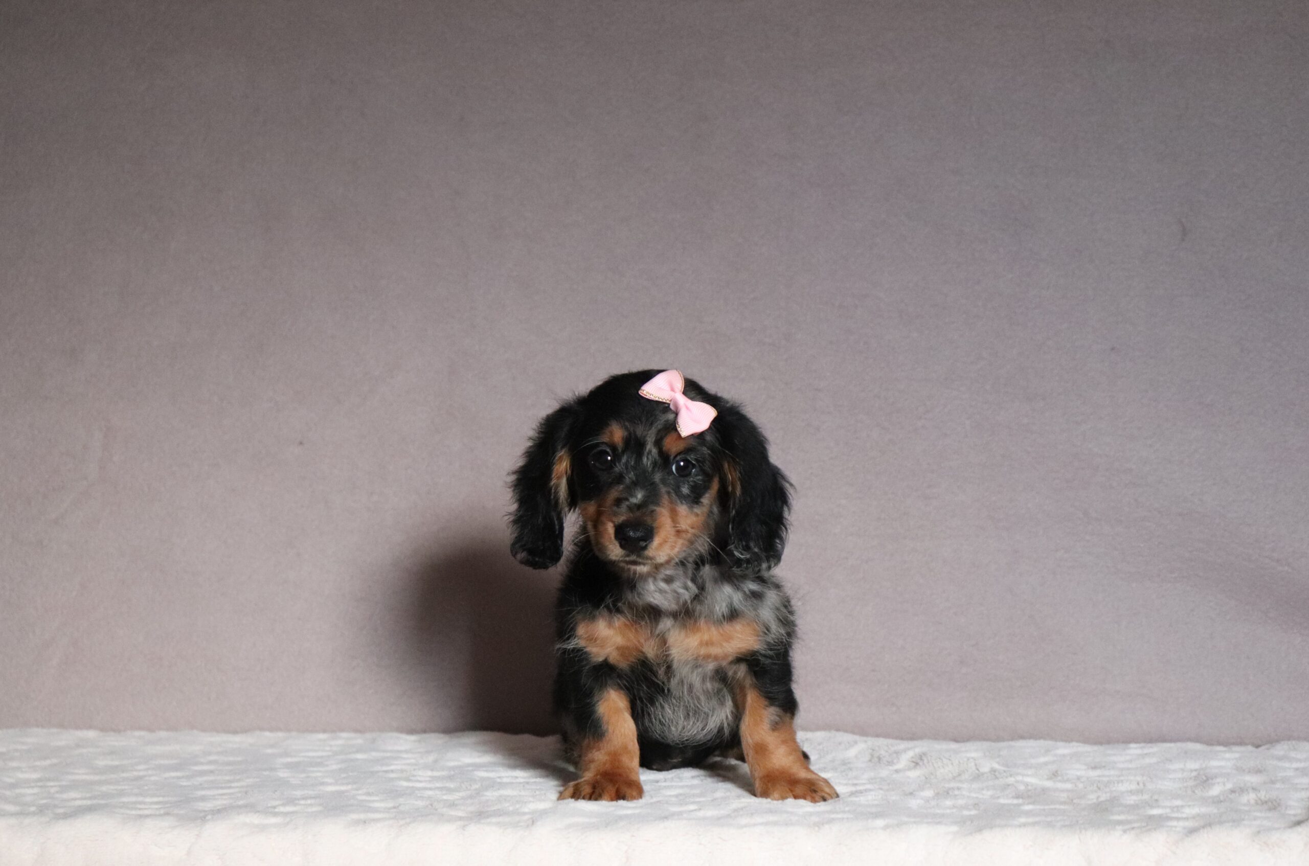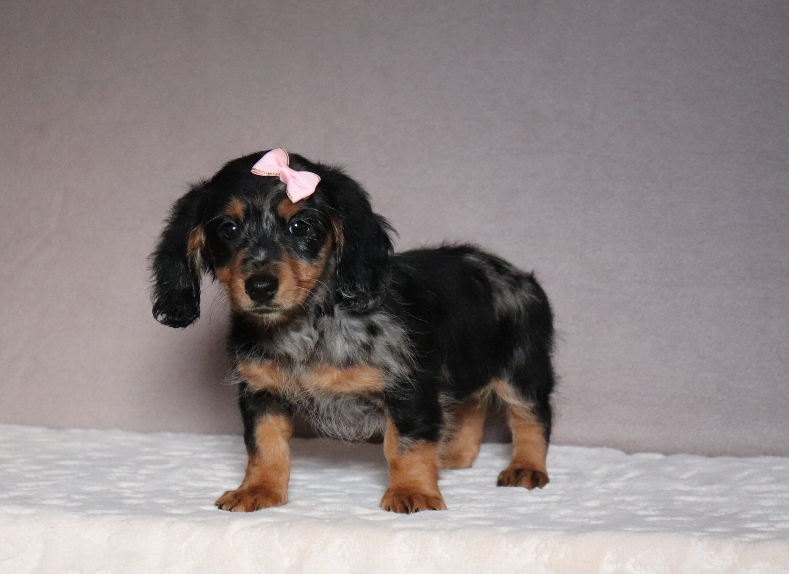 Jada, the longhaired,mini dachshund, is very caring and sweet! She has a gorgeous blue merle coat!! She is such a cheerful little girl ,a great companion to her littermates! Her temperament is wonderful! She is eager to please and a bundle of love!