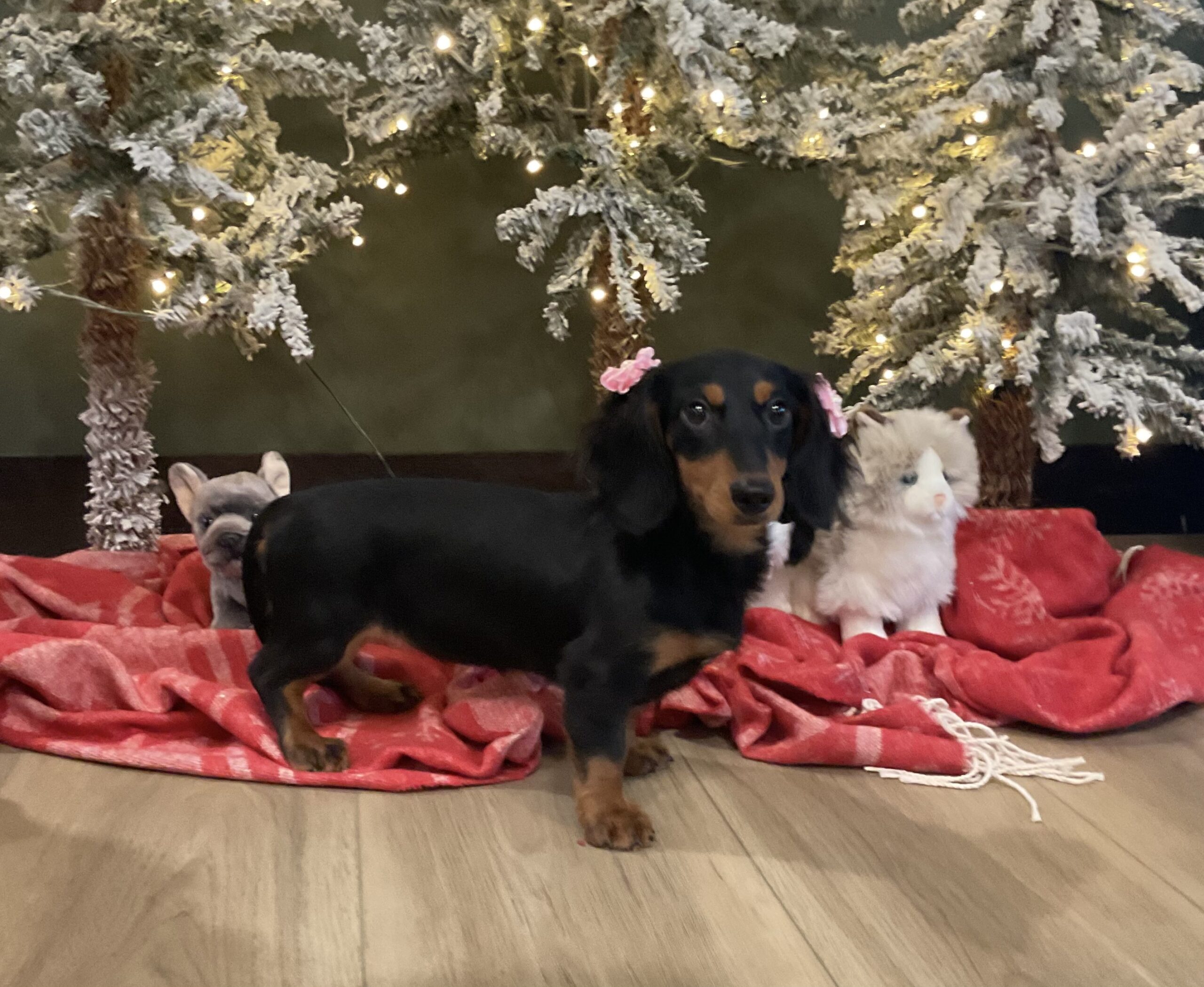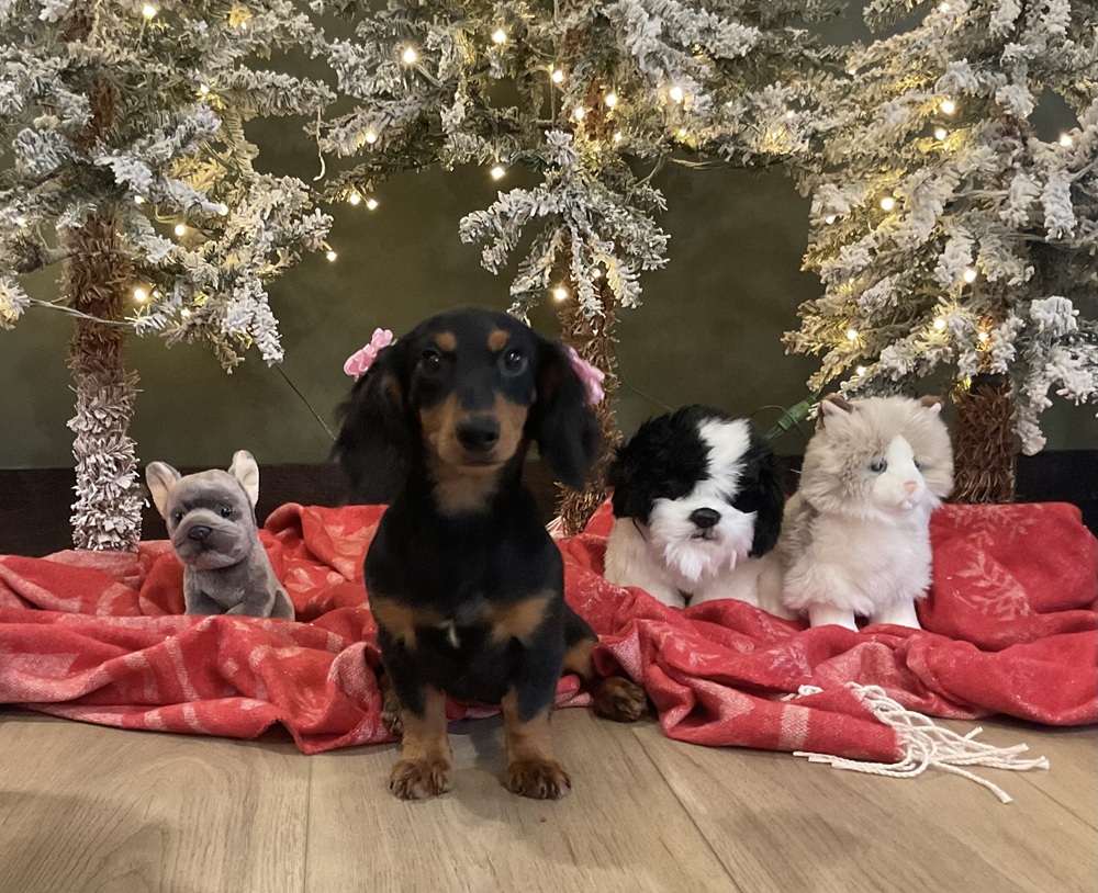 Melia is a sweet female Dachshund puppy. Very well rounded pup that would do great in any family setting.