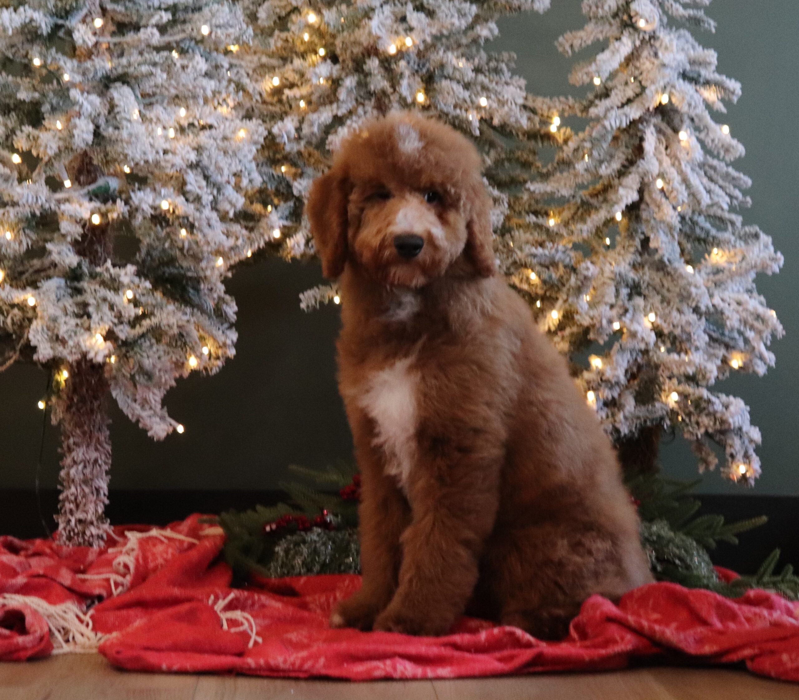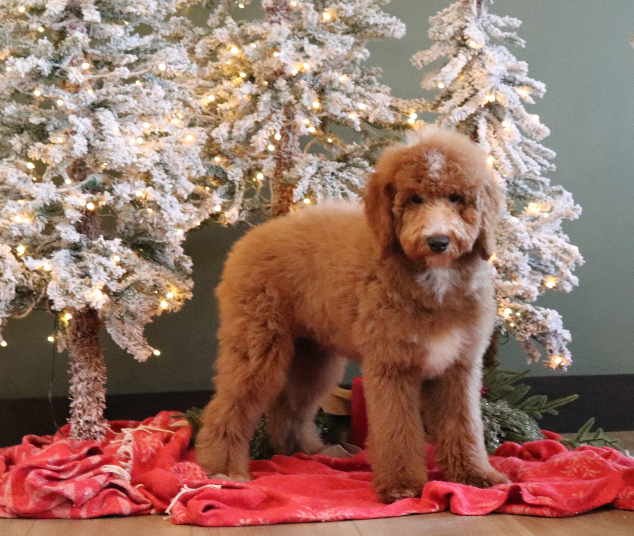Rover the Mini Goldendoodle boy is very sweet ! He is a happy pup that loves attention. Rover would excel in any environment . With a awsome temperment Rover would make a great therapy dog .